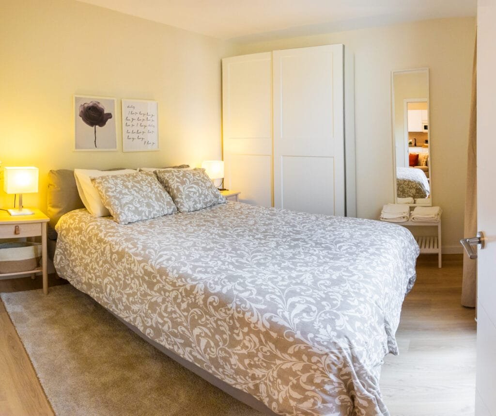 Cómodo apartamento de 2 dormitorios para 3-5 personas. Cuenta con dormitorio principal, habitación individual, cocina completamente equipada, salón y baño privado.